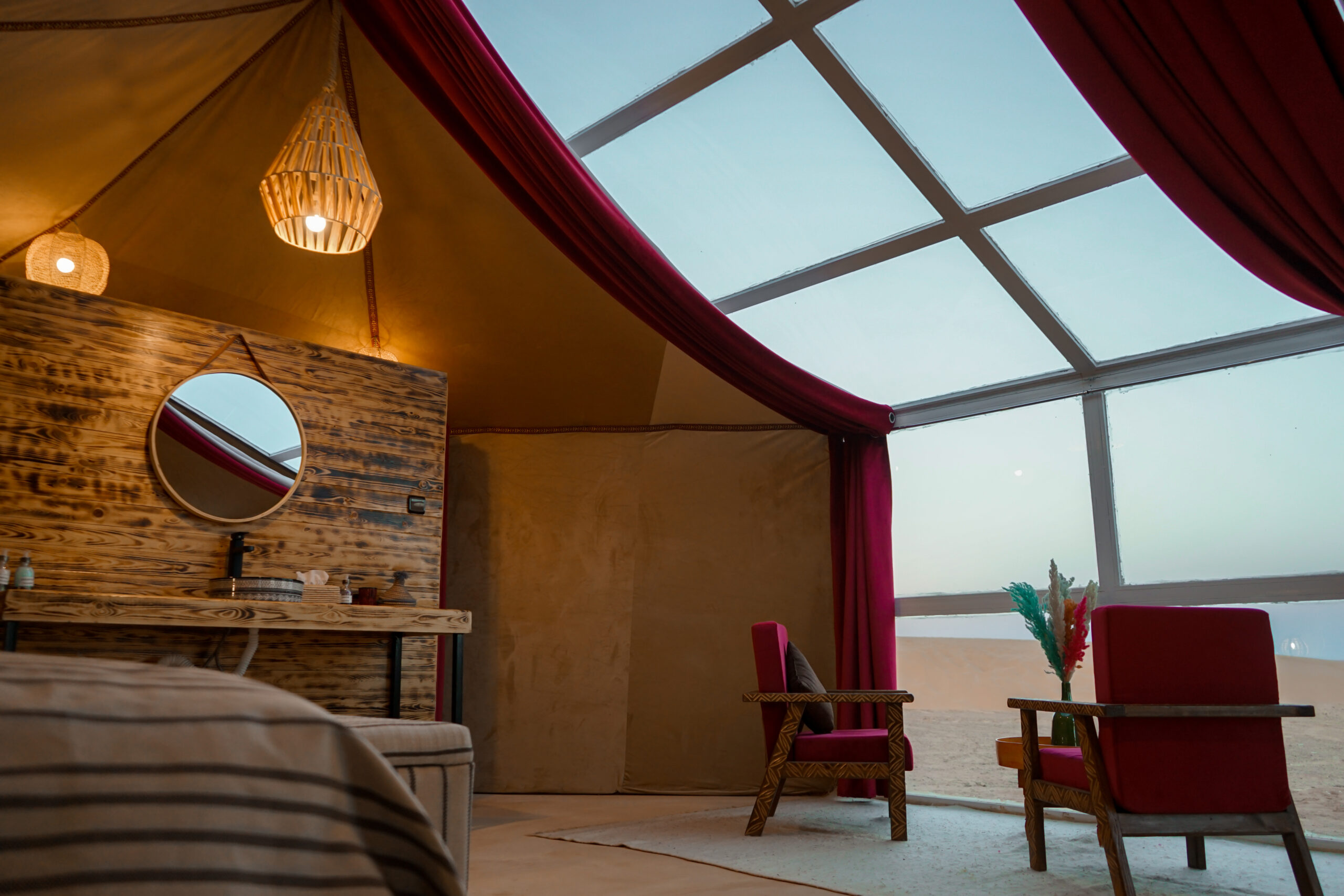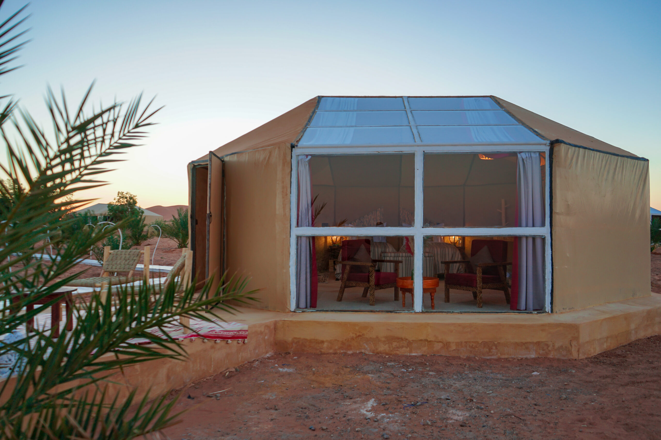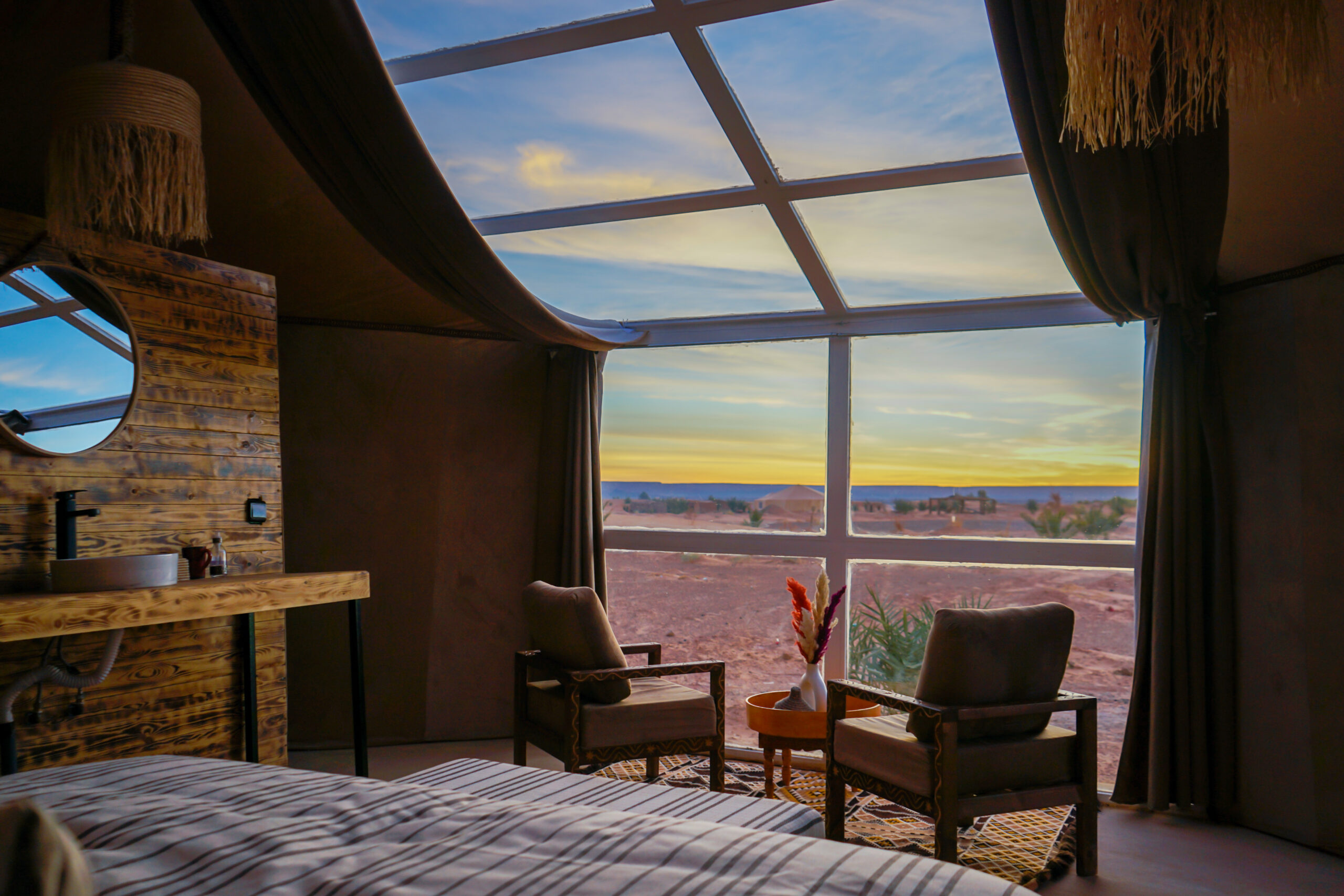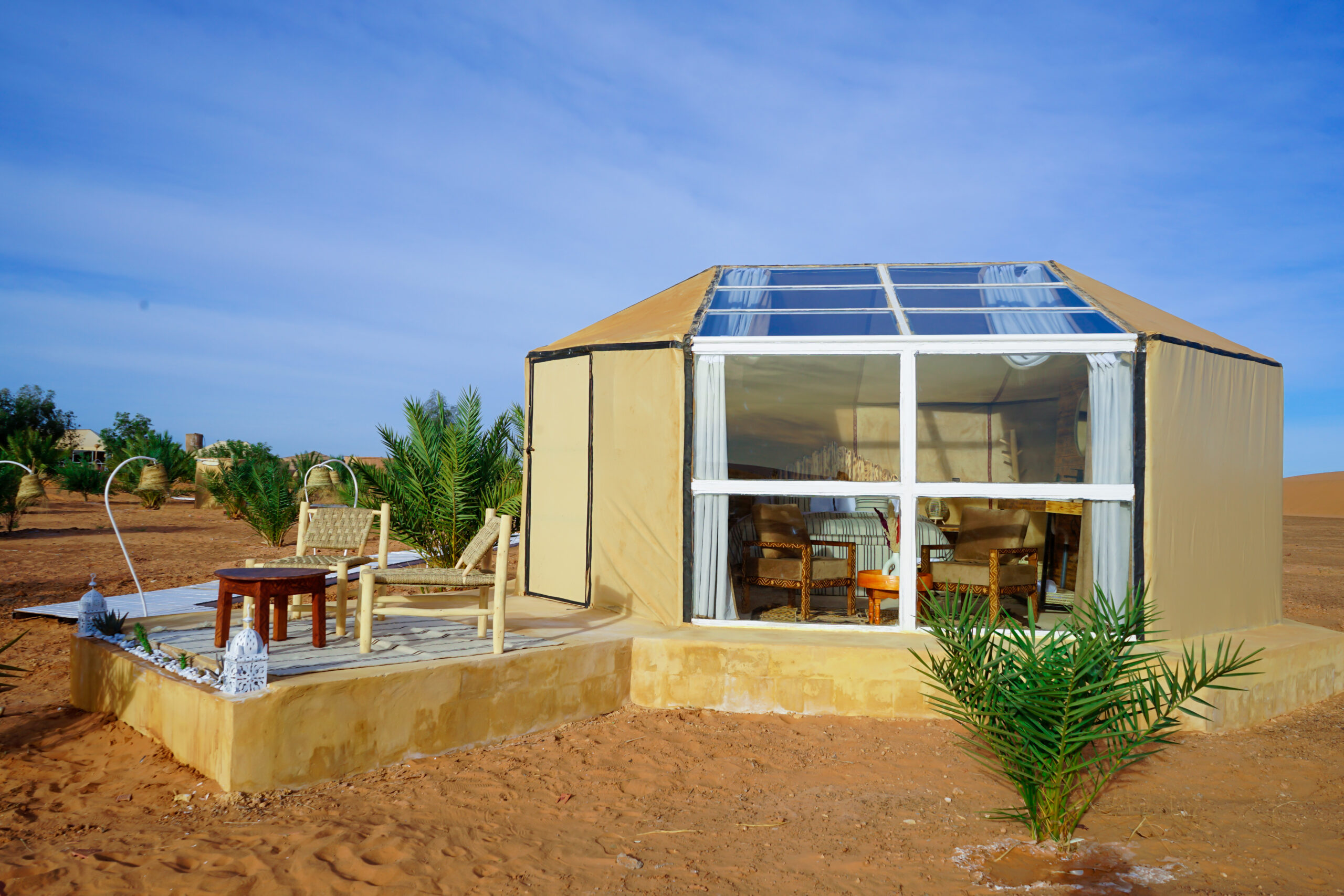 Our camp is designed for travellers who seek comfort without compromising the raw beauty of the Sahara. Each of our unique glass-fronted tents invites you to relax and gaze at the celestial spectacle above — unfiltered and breathtaking.