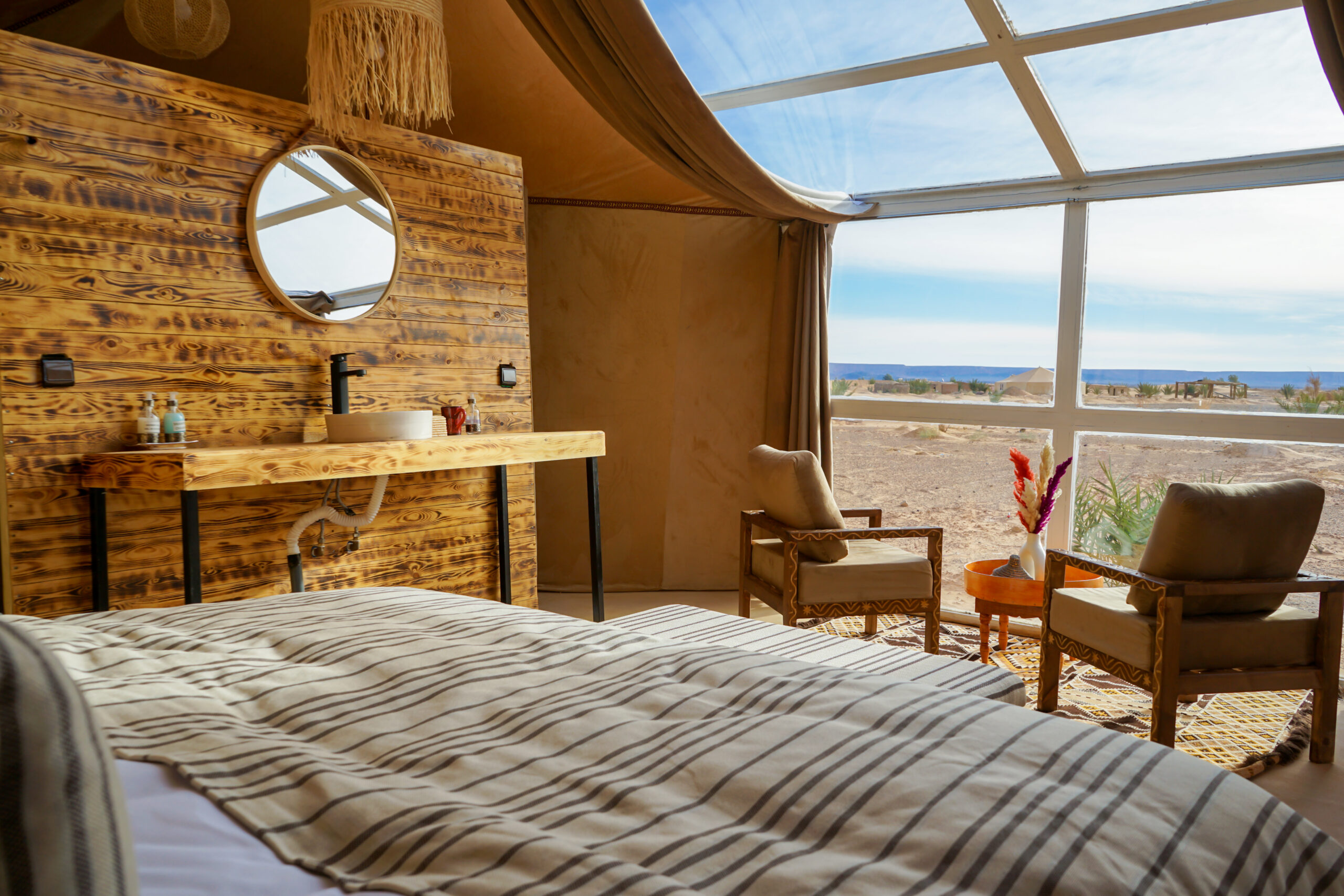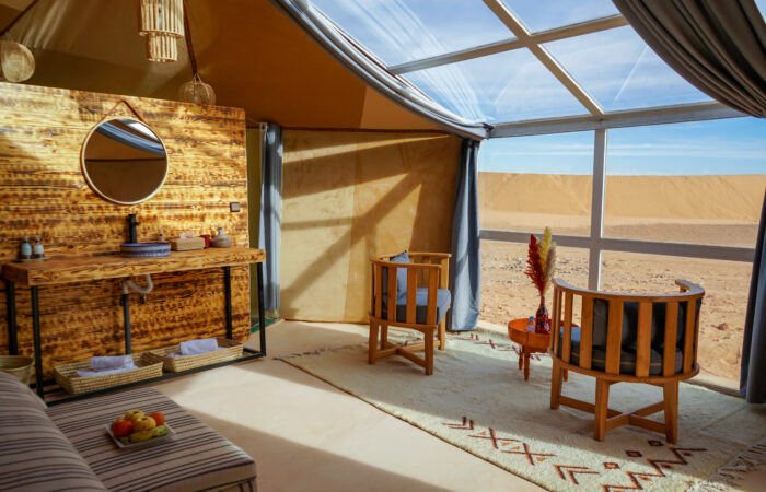 Experience Merzouga’s vast desert, modern comfort, and uninterrupted views