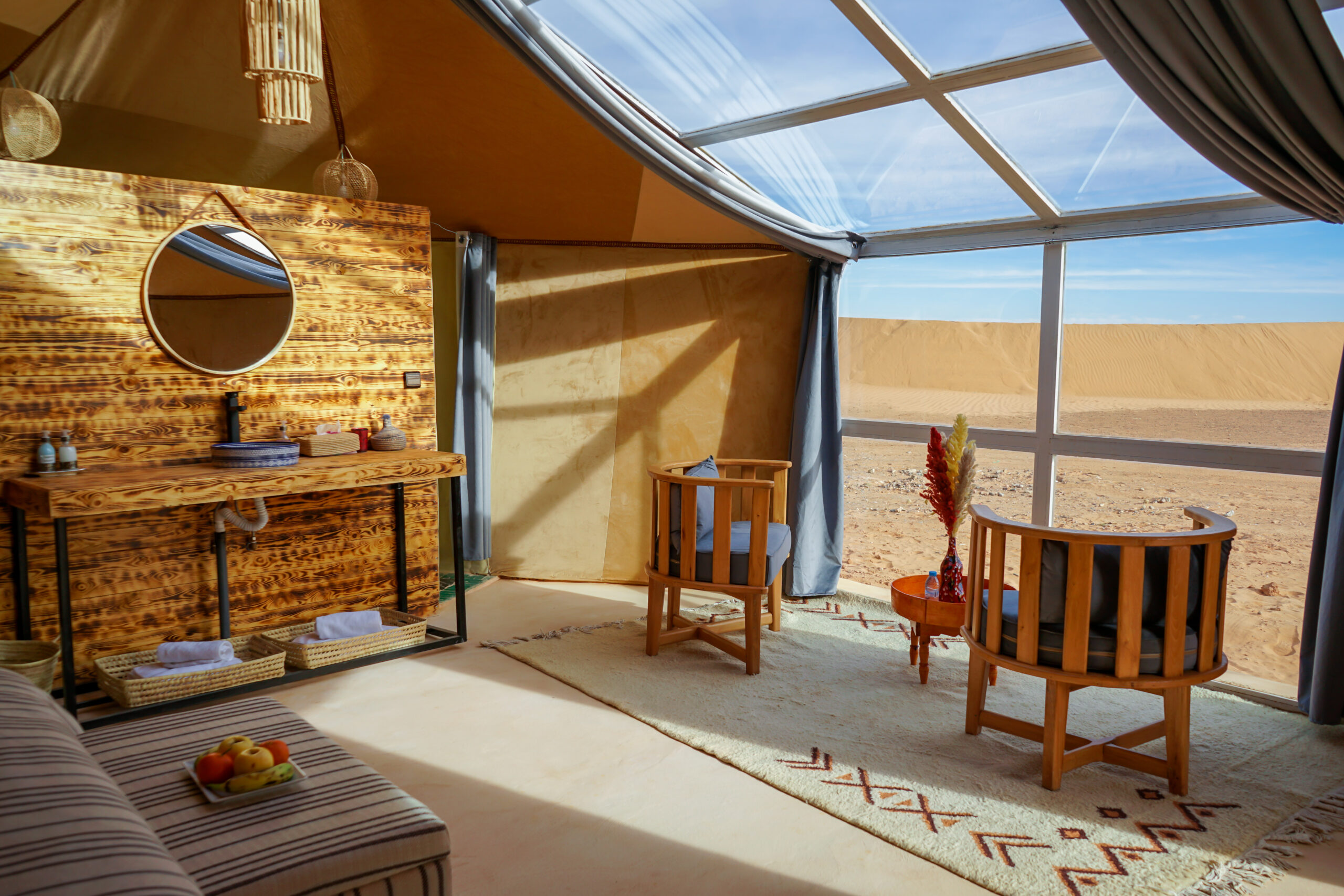 At Sky View Camp, connecting with the Sahara means slowing down and embracing the rhythm of the desert. Surrounded by endless dunes and open skies, you are invited to experience silence, space, and simplicity in their purest form.