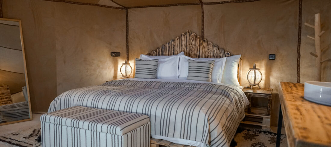 Discover the Deluxe Suite, our premier accommodation at Sky View Camp — a refined desert retreat that seamlessly blends modern comfort with the dramatic beauty of the Sahara.
